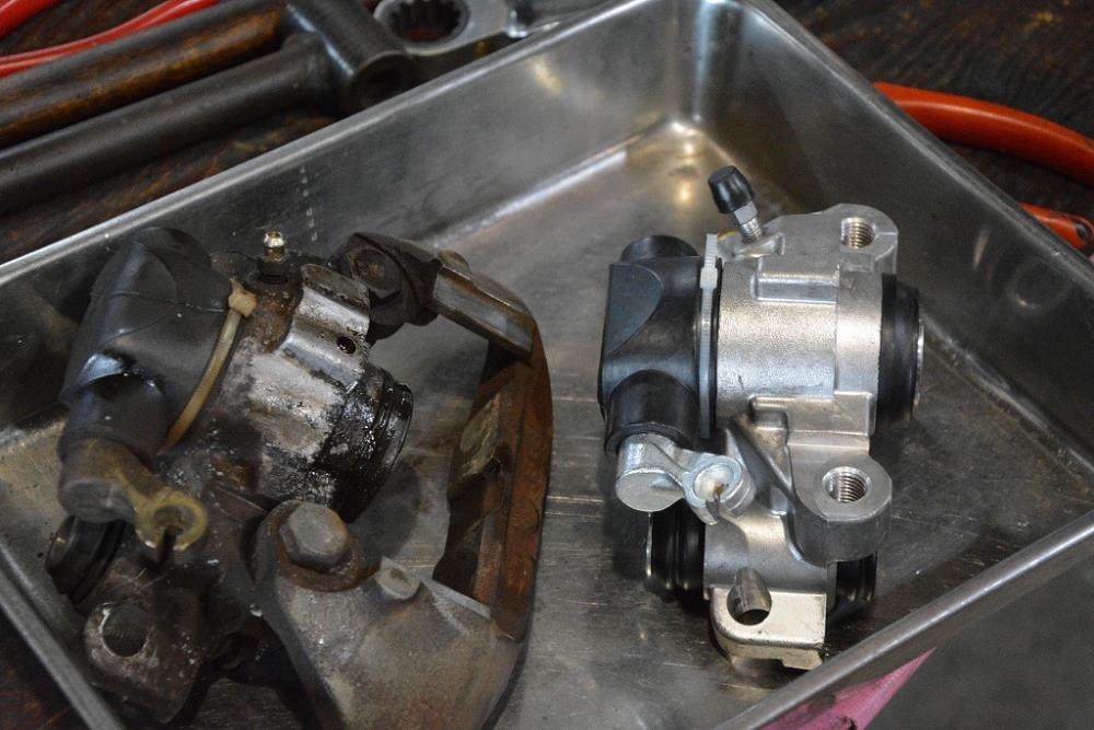 ブレーキキャリパーからのオイル漏れの酷かった306MAXIです。…もっと見る
