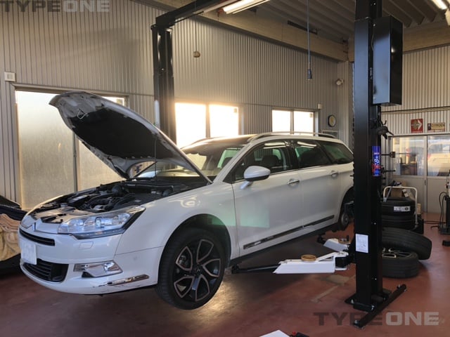 社用車のc5ツアラー。リアタイヤの磨耗でプライマシー3が入荷してきましたので交換です。MFAもしっかり充填して完成です。