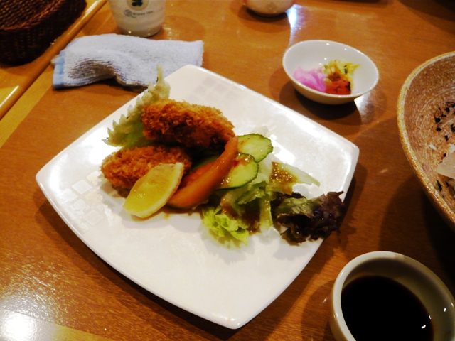 魚貝類、満載です。 彩りもきれいでさすが和食屋さんですね。今からが旬のカキフライ とサラダ  おいしかったですよ~。デザート ひんやり冷たくておいしかったです。