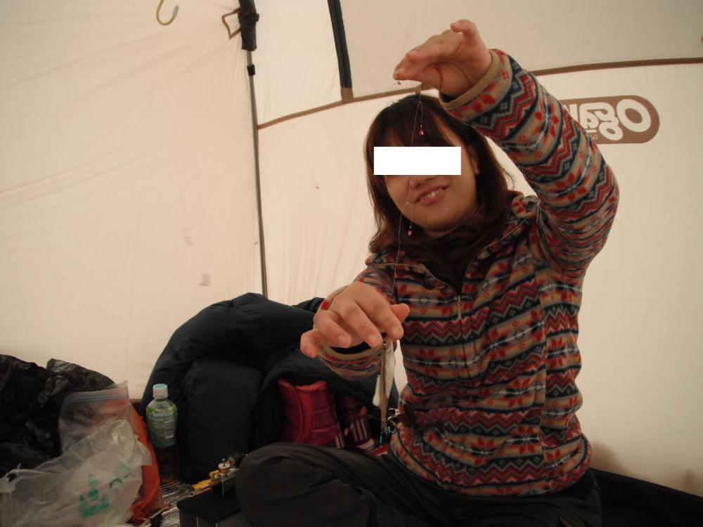 こんな感じに小一時間格闘して今期最後に心中する穴を決めテントを張ってやっと実釣開始。