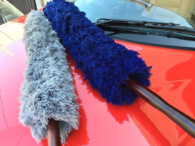 毛バタキの二刀流でボディに積もったホコリを落とします。