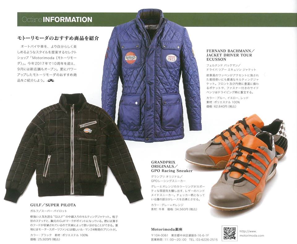 ・「octane」(12/6発売号)でのフェルナンド・バックマンやガルフのウェアやGPOスニーカーなどご紹介いただきました。