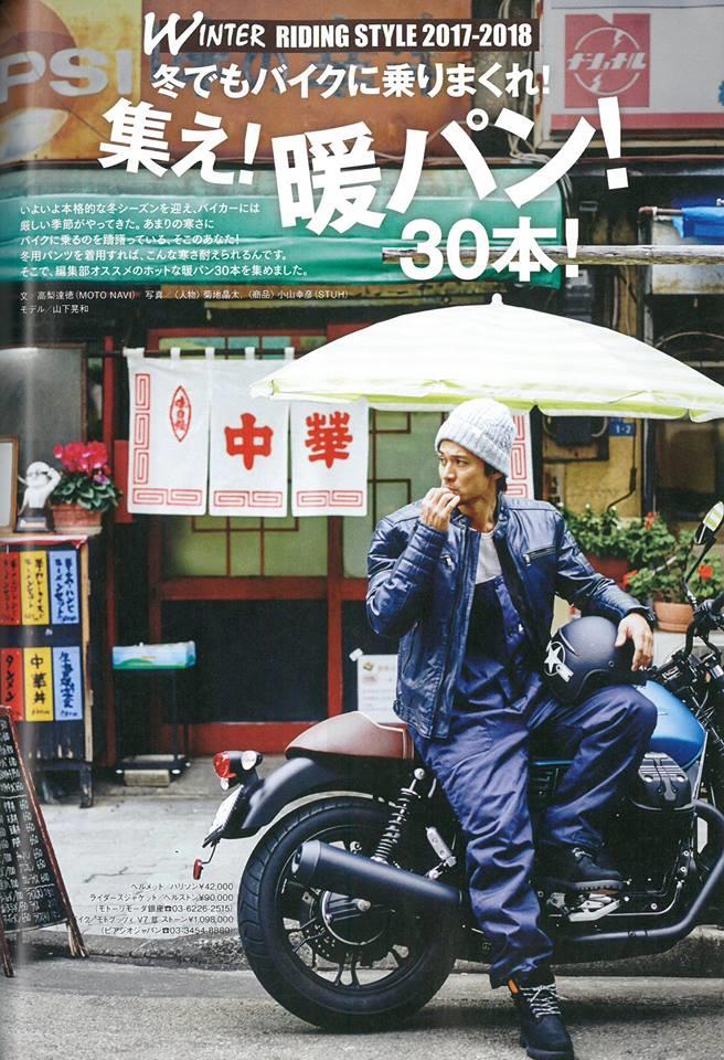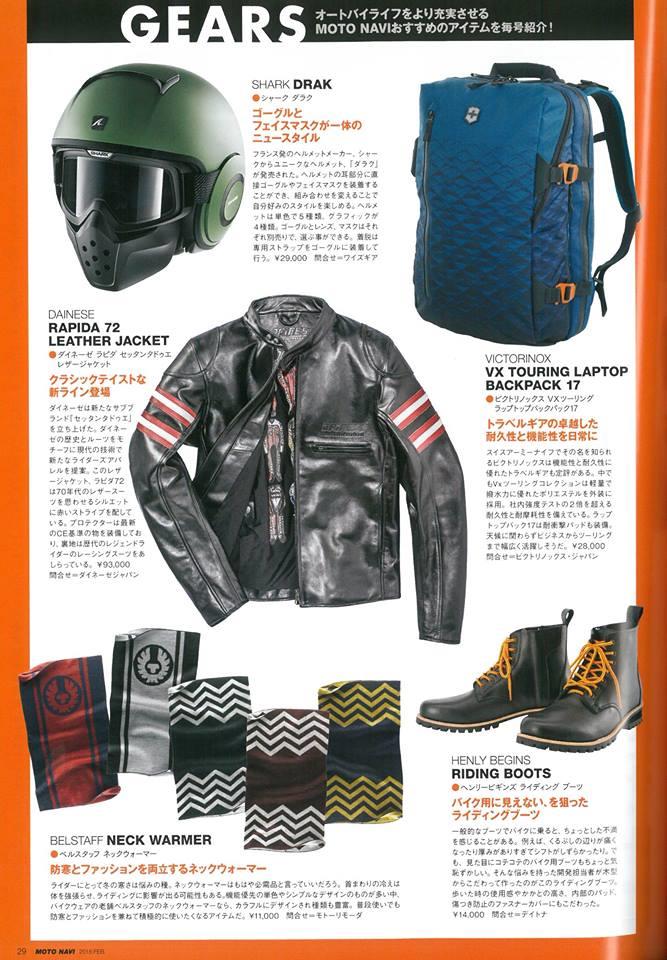 ・「MOTO NAVI」(12/24発売号)で、ヘルストンのレザージャケットやブラウアーHTのダウンジャケット、ベルスタッフのネックウォーマーをご紹介いただきました。