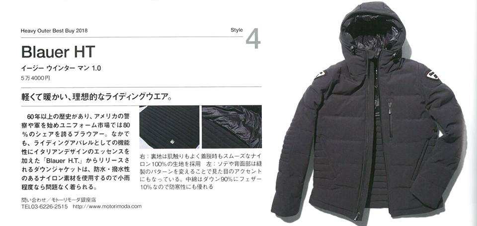 ・「CLUB HARLEY」(12/14発売号)で、ブラウアーHTのダウンジャケットをご紹介いただきました。
