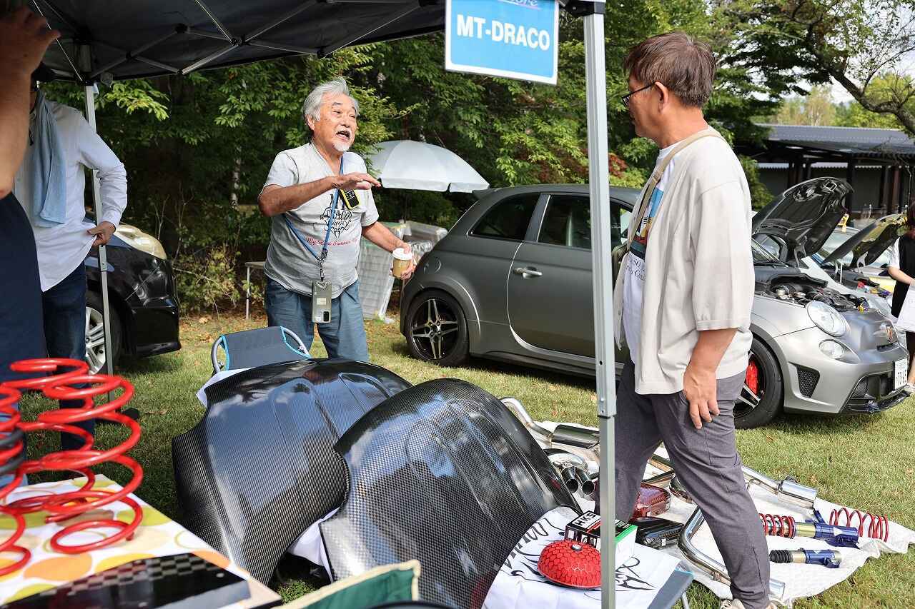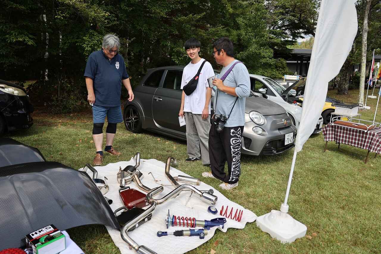 ブースにはフィアット&アバルト500用などのパーツが並べられており、そのパーツを装着したデモカーも3台ほどが展示されていました。デモカーは希望があれば試乗も可能ということで、訪れた参加者の方がその走りを味わっていたようです。