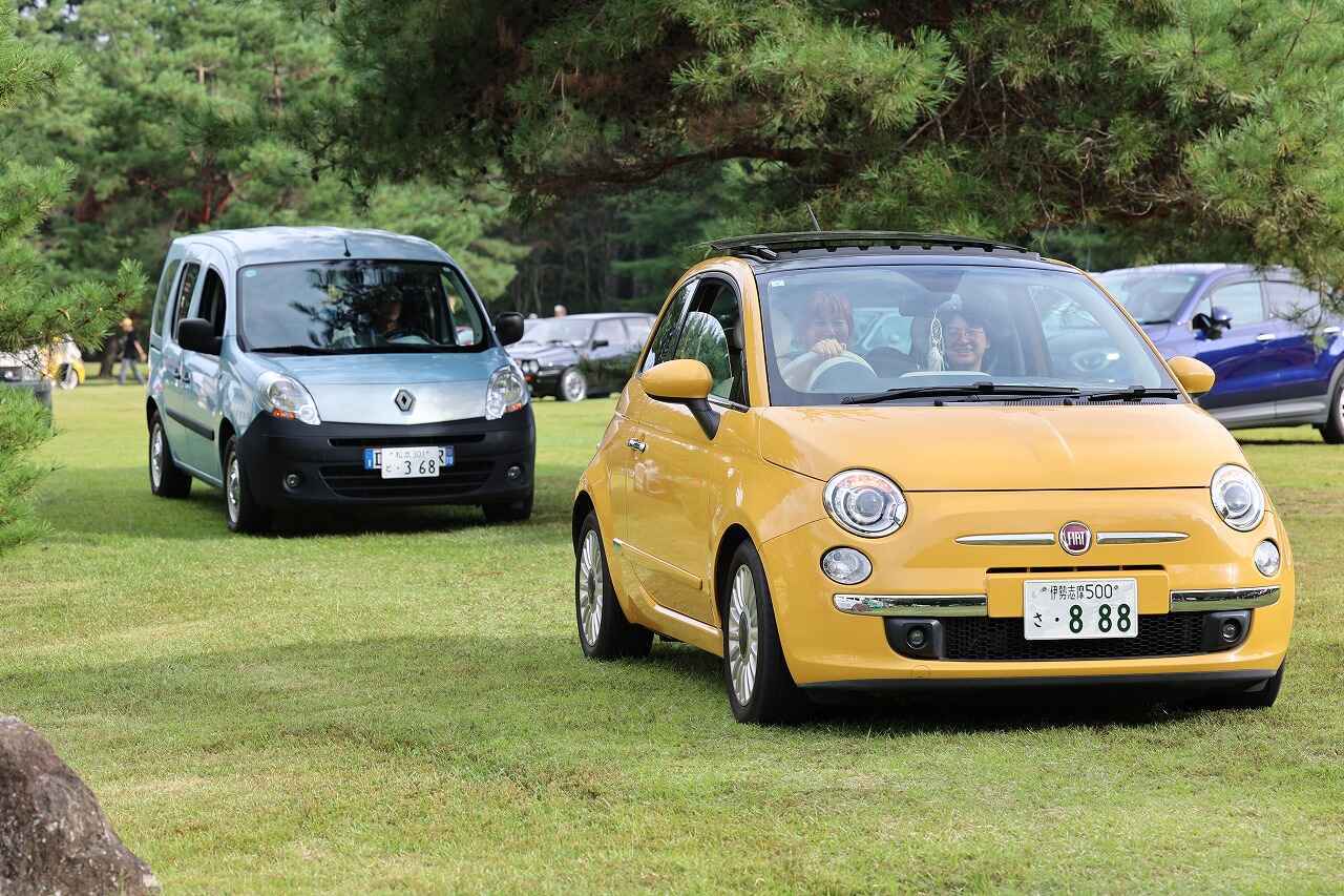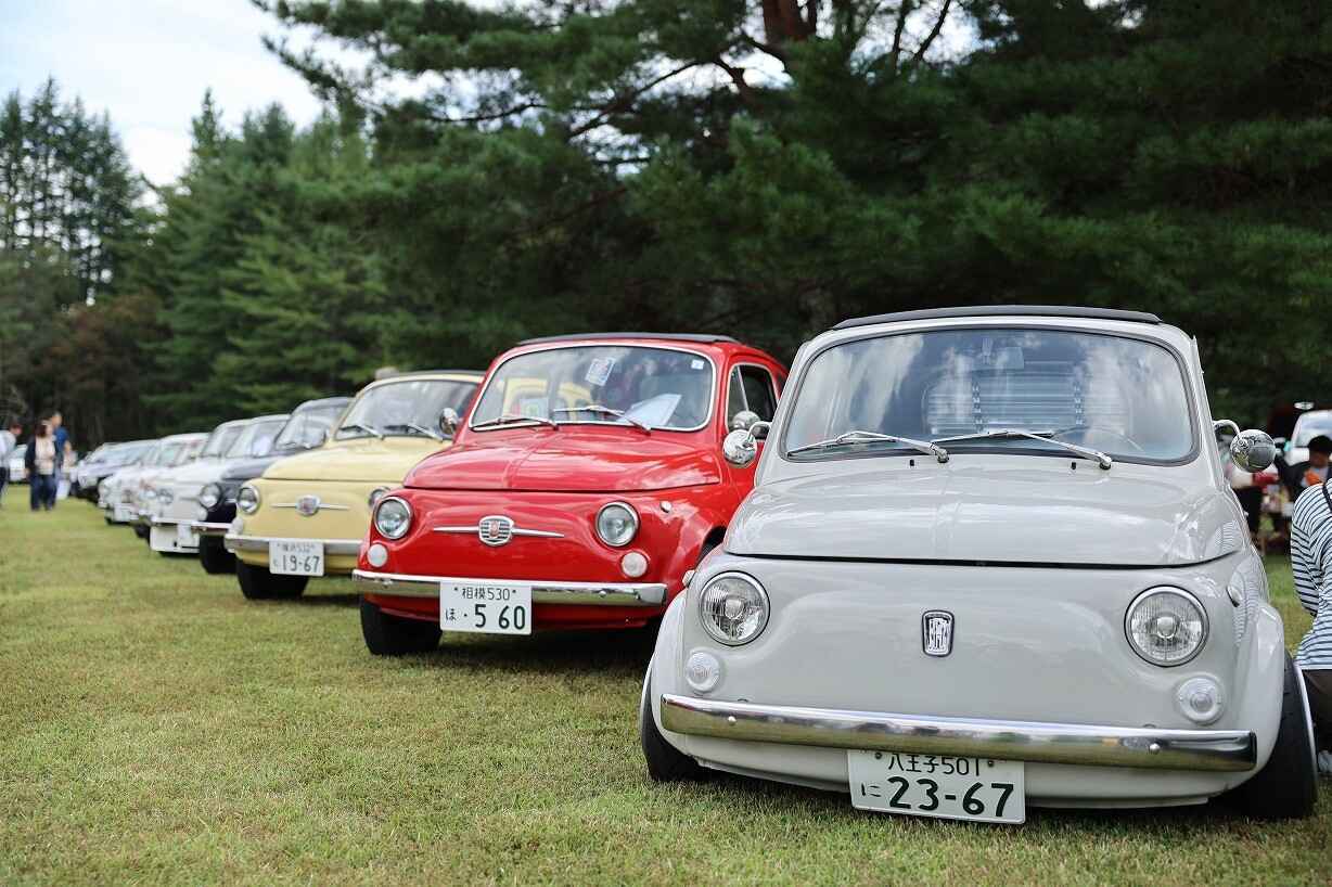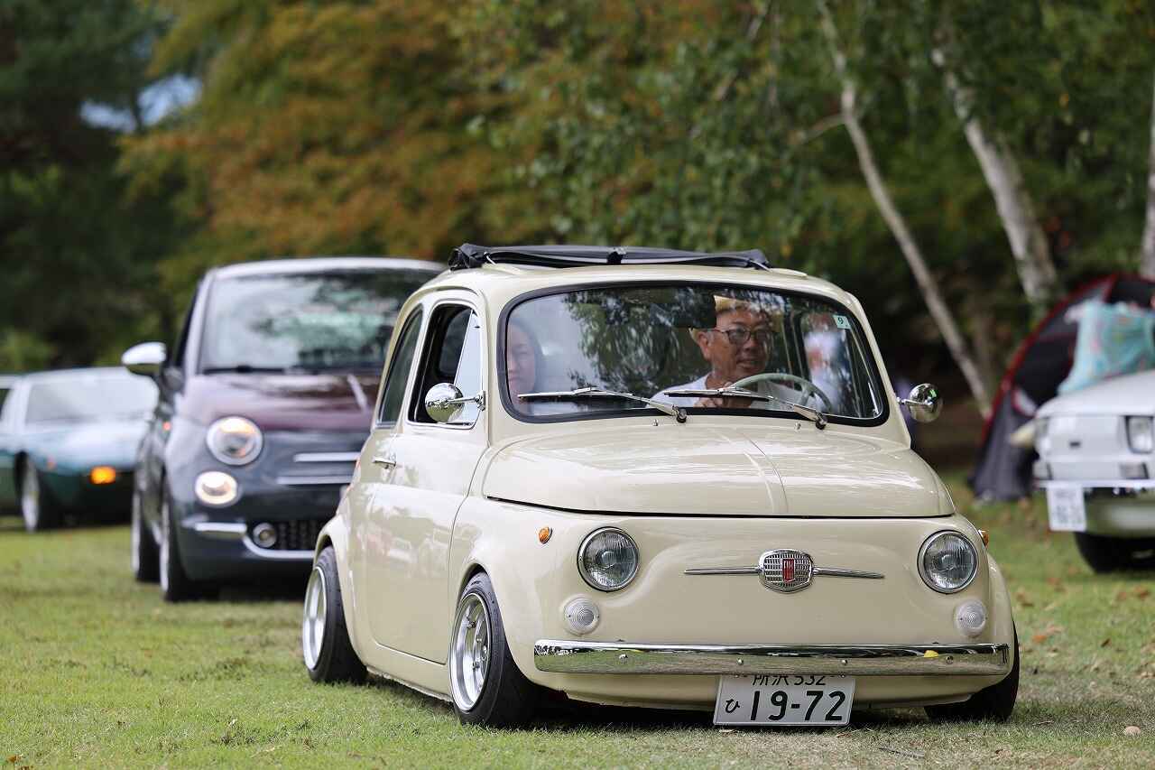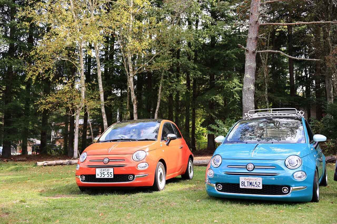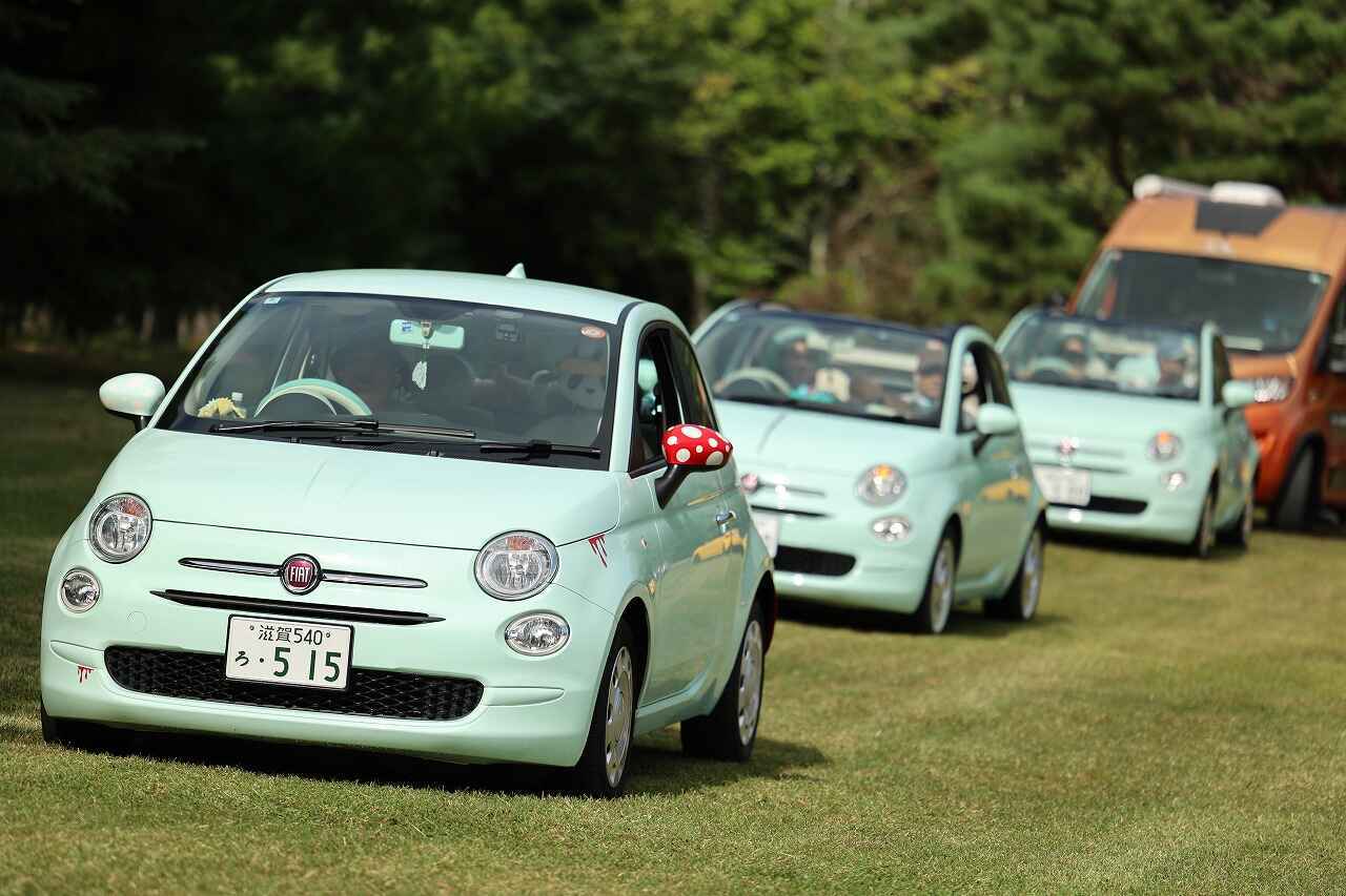 おそらく最も参加台数が多かったフィアット500は貴重な初代からEVとなった最新型までが参加。