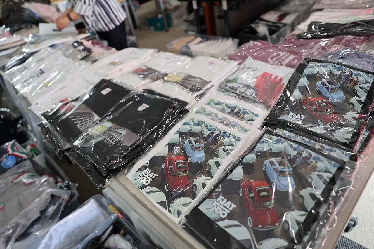 トリコローレ主催のチンクエチェント博物館も、イタリア本国から輸入した貴重なFIAT500のグッズやオリジナルのアパレルなどを取り揃えて、500オーナーならず他車のオーナーの皆さんにも注目されていました。