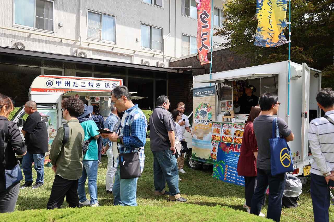会場となる”人材開発センター富士研修所”の周りには飲食店も少ないので、こうして会場内で色々なグルメを楽しめるのは嬉しいですね。