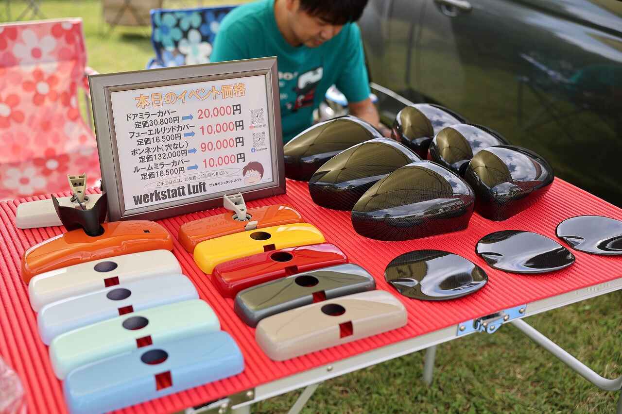 ショップエリアではお馴染みのカーショップや個人で作製したオリジナルアイテムを販売するショップなど様々な出店があり、来場者のお財布のひもを緩めていました。