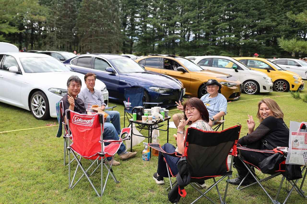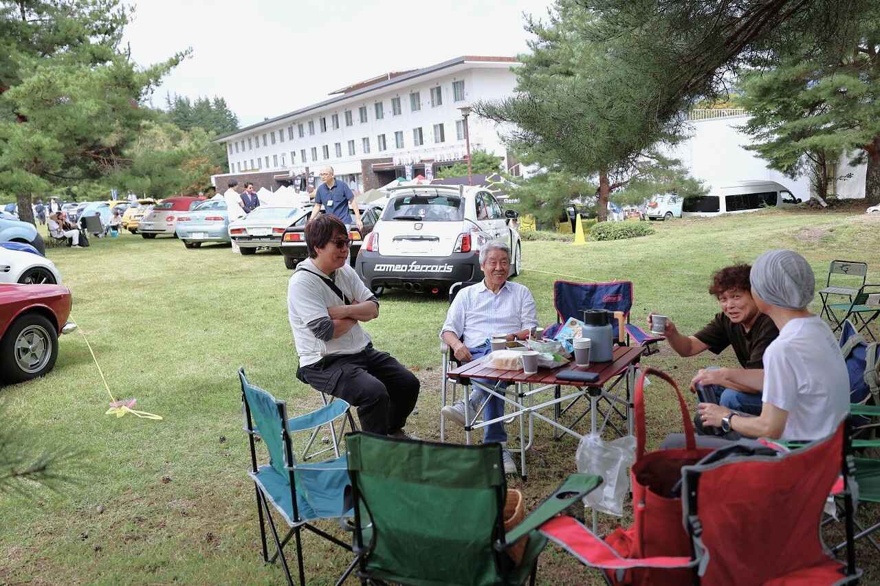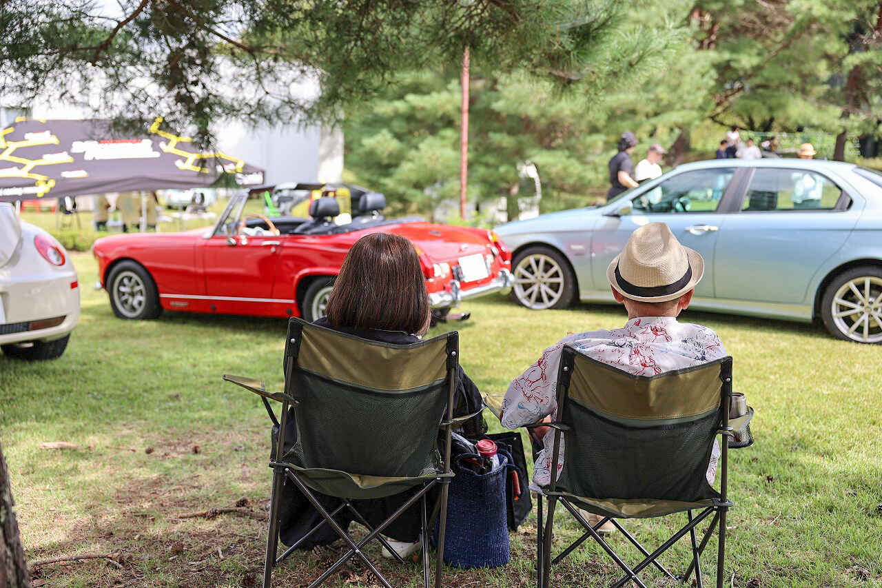 参加者の皆さんは、広い会場を散策しながら参加車両を見学したり、愛車を前にクルマ談義したり、ピクニック気分でワイワイ盛り上がったりと、秋の休日を愛車や仲間たちと共に思い思いに楽しんでいる様子。