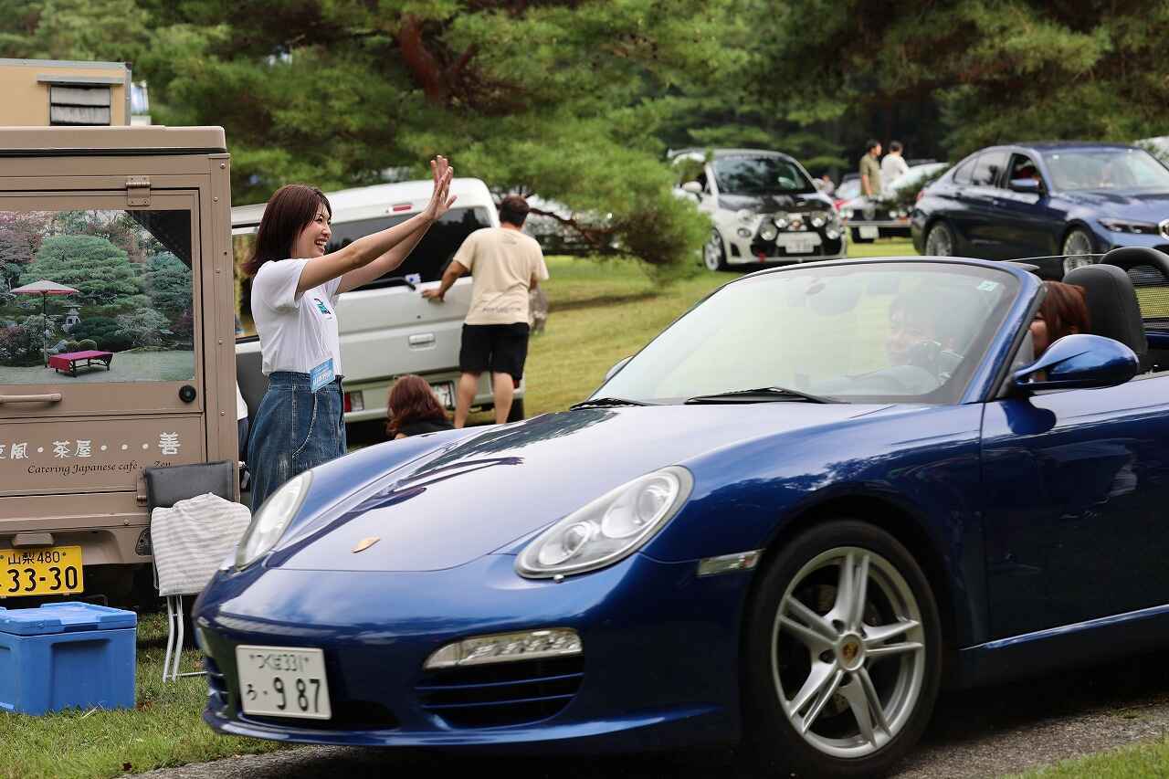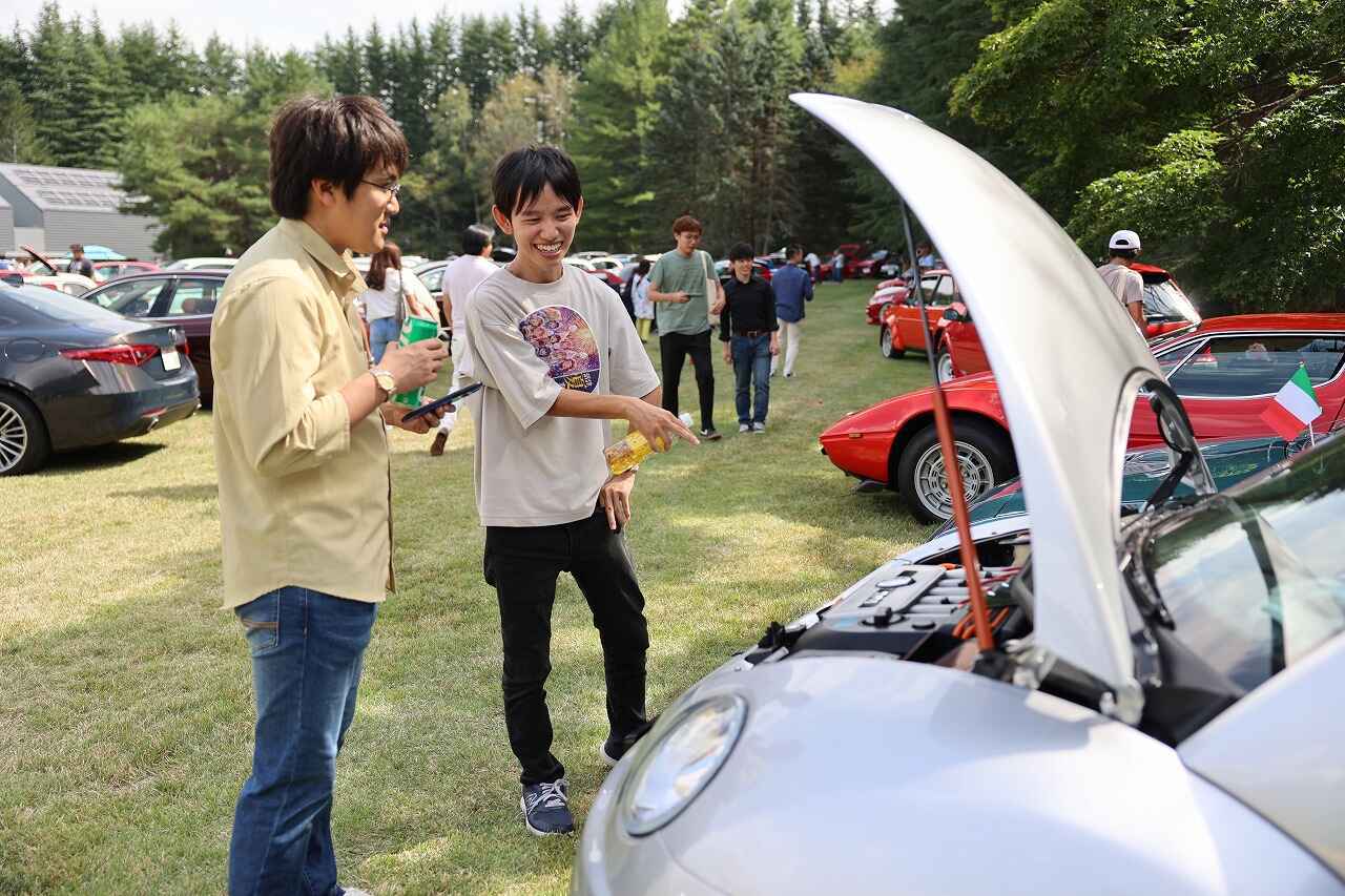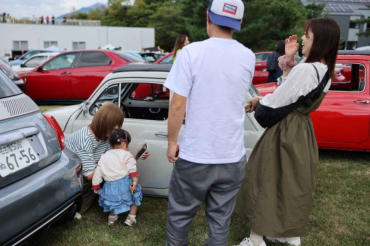参加者の皆さんは、広い会場を散策しながら参加車両を見学したり、愛車を前にクルマ談義したり、ピクニック気分でワイワイ盛り上がったりと、秋の休日を愛車や仲間たちと共に思い思いに楽しんでいる様子。