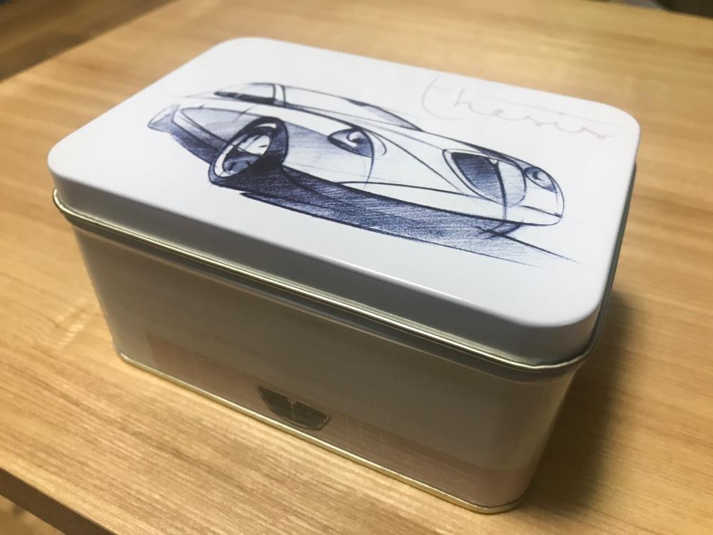 紙箱を外すとアルミ缶が。 こちらにもデザイン画が入ってます。