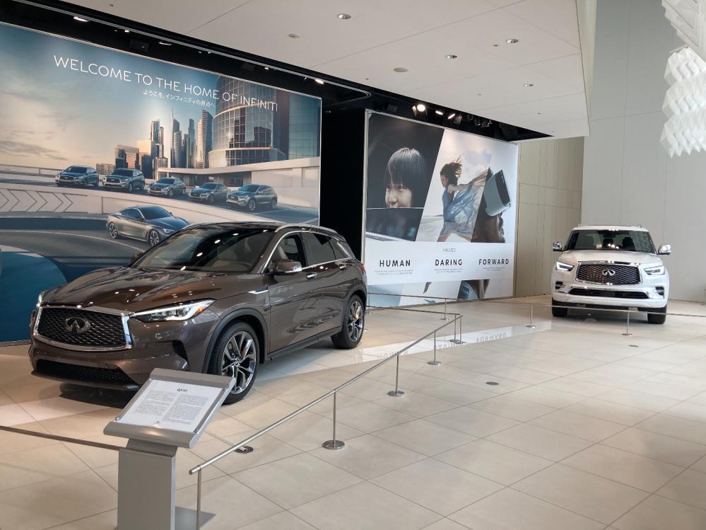 ショールームの片隅にはインフィニティコーナーも。 日本未発売の2台です。