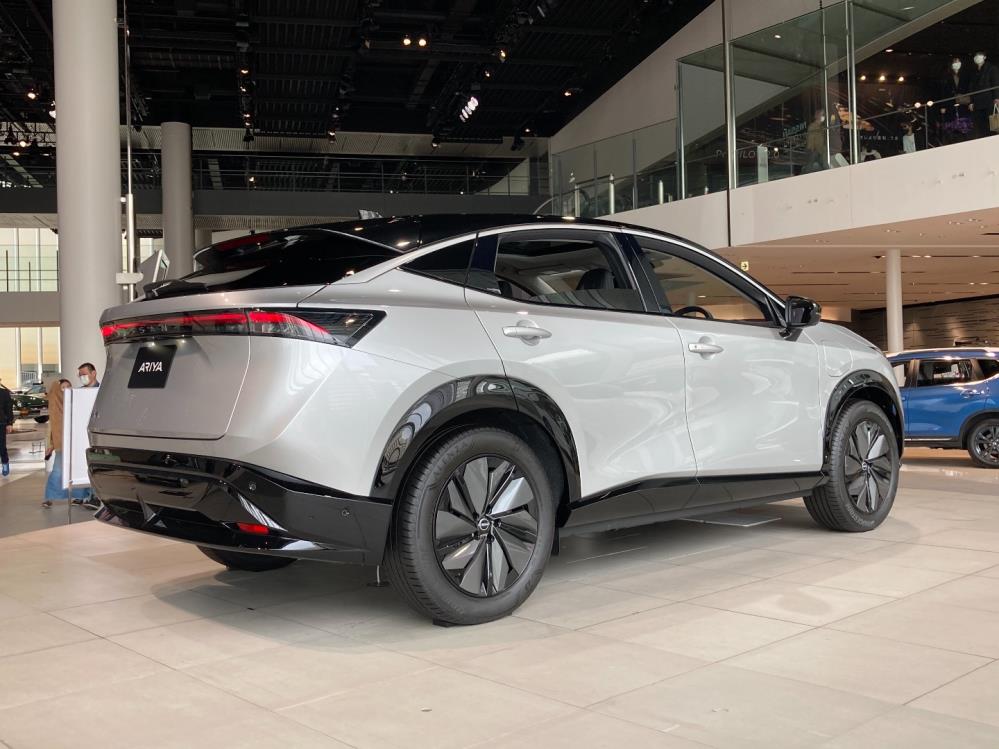 アリアの展示も。 ホームページでは、シルバーxブラックルーフって書いてますが、ホワイトっぽいシルバーですね。個人的には以前見たカッパーやブルー、レッドといった色の方が好きかなぁ。 デザイン的にはこれかなり好きですね。 Eパワーのモデルとかも出てくれないですかねぇ。