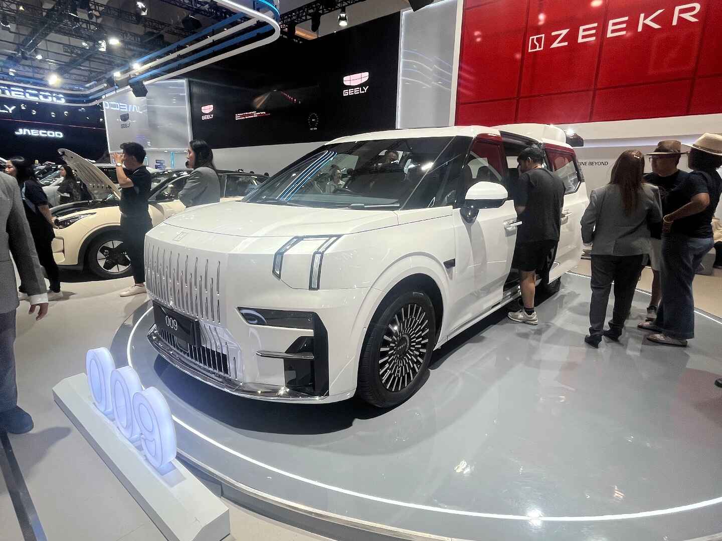 ここ数年の傾向ですが、相変わらず中国車の攻勢が凄いですね。中国勢では当地でNo1のBYDは新モデルは無かったですが、2番手のWulingが3列7シーターSUV、3番手のCheryが新ブランドのi car を発表、またGeeryの高級ブランドのZeekrが日本円で1000万円クラスのモデルを発表と、最近ぼちぼち見かけるXpengとかも含め高価格帯のモデルを続々投入してきてる感じです。