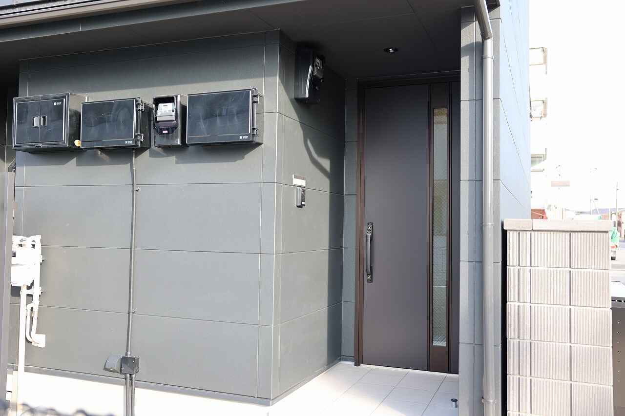 普段の出入りに使う玄関はガレージと反対側にあります。スマートキーに対応しておりセキュリティ面も安心。