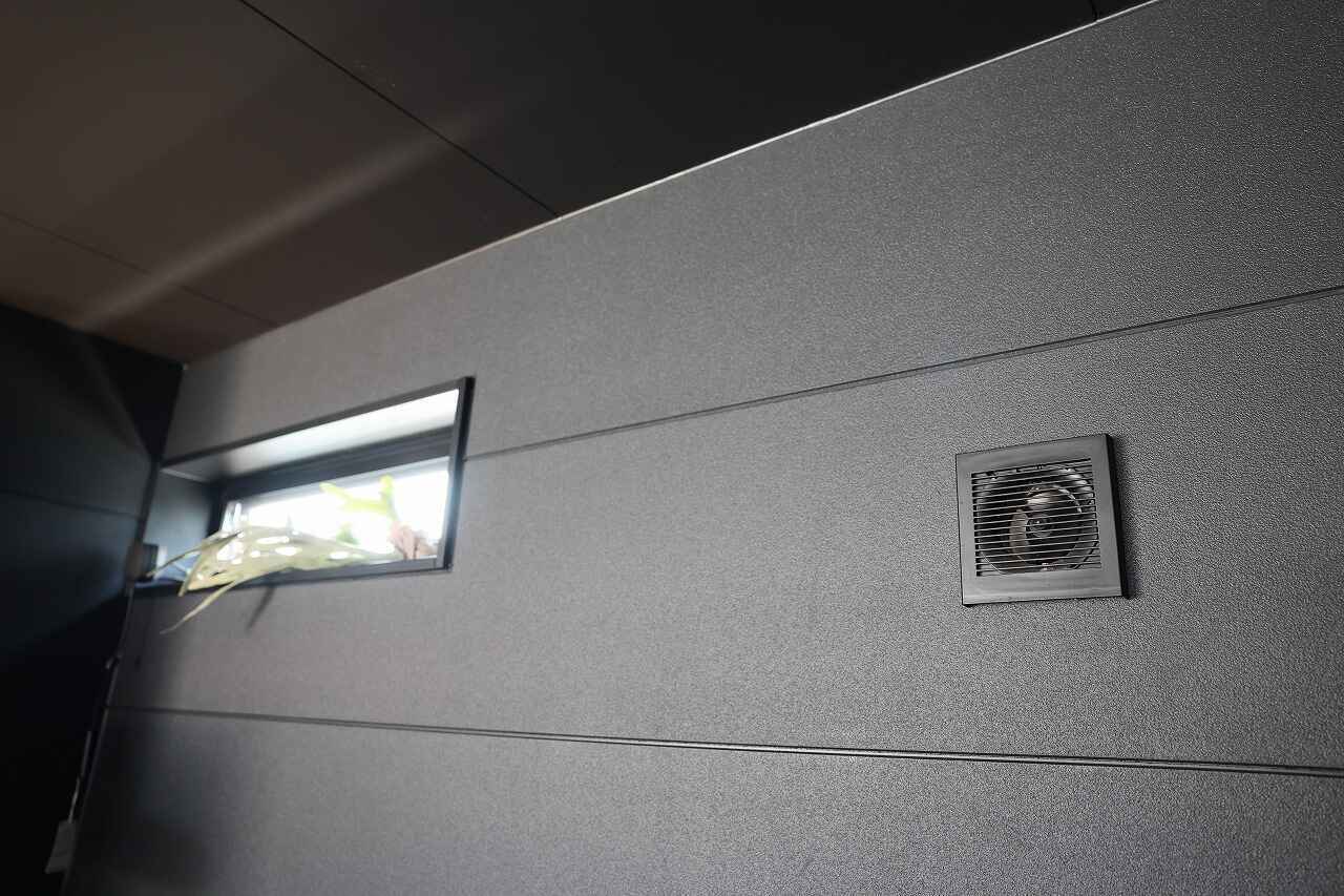 もちろんエアコンや換気装置も完備しており、ガレージ内でも快適に過ごせる。