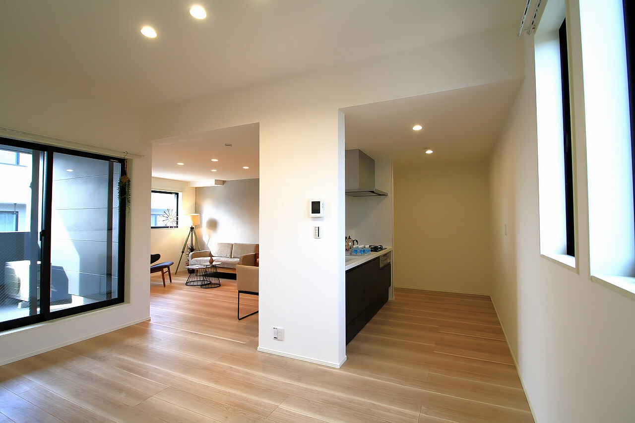 キッチンを壁際に寄せているのでリビングが広く感じられます。