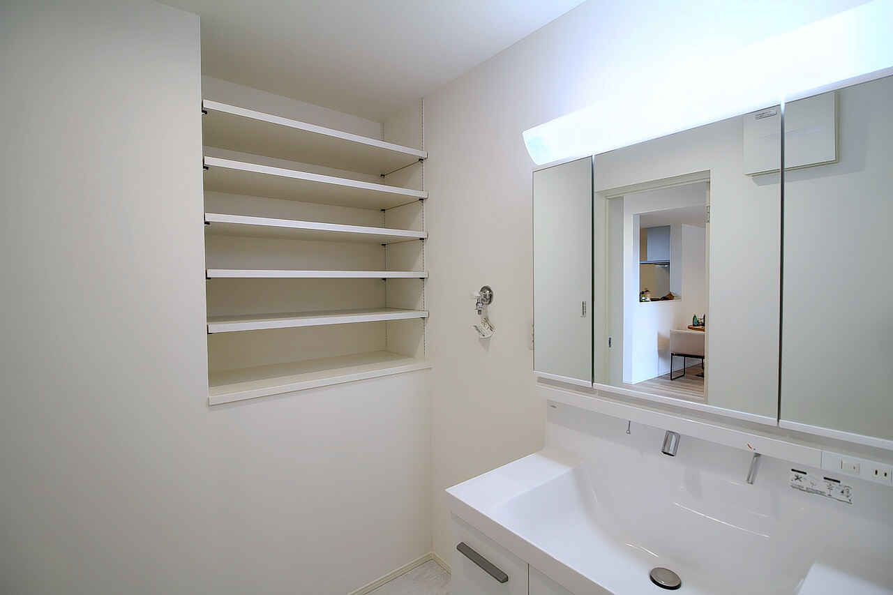 ホワイトで統一された洗面&ランドリールームも広くて清潔感があります。