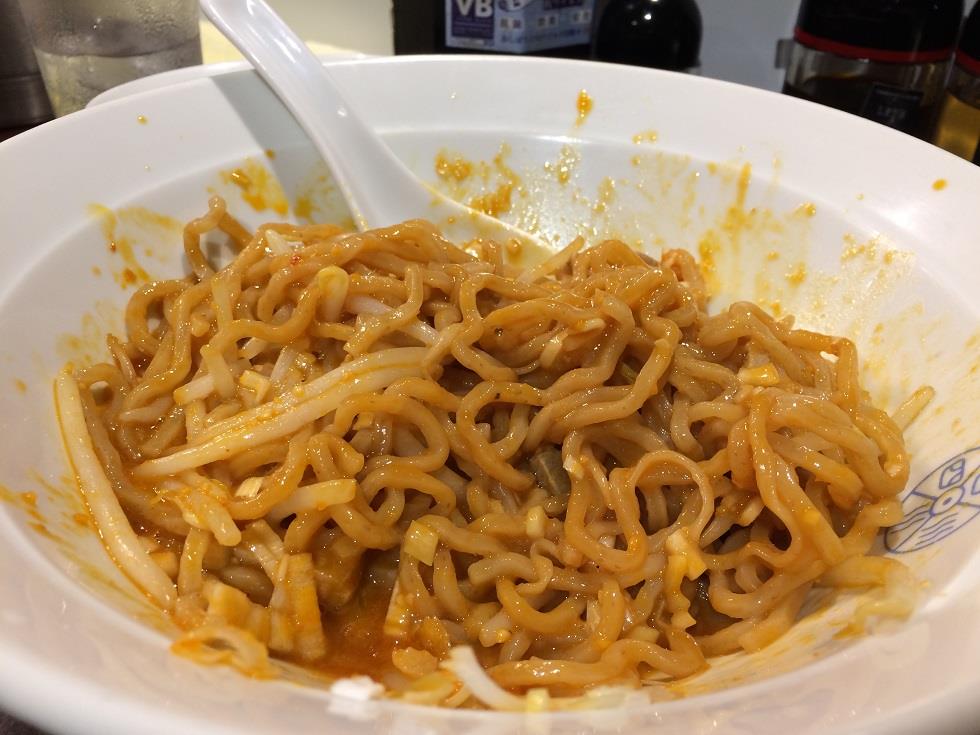 このピリ辛の汁無し担々麺は癖になります。