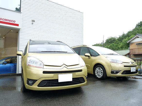 先日の日曜日、かーとものたかさん・ROALさんとプチOFFしてまいりました! 今回の目的は、そう! CITROËNから注目のデビューをしたDS3のテストドライブです! 自宅にたかさんとROALさんに来て頂き、Picassoに三人で同乗して シトロエン天白さんに突撃です ディーラーの駐車場に到着すると、思いがけず同色(オーアノディゼ)の試乗車と2台並びました(^^) この並びは珍しいですね~! 思わず撮っ で、ショールーム内に入ると、Picasso・C4クーペ・C4セダンと三台が展示されていました。 先日まで展示されていたはずの、NEW C3は残念ながら売れてしまったとの事(泣) 美味しいコーヒーやお茶を御馳走になりながら無念さを紛らわせました でも、試乗車のDS3はちゃんと待っていてくれました! グリチタニウムのボディカラーにルーフカラーはブルーボッティチェリのお洒落さん! PS:写真は白く反射してしまってキレイに撮れて無くってスミマセン(泣) 「お三人で交代しながら試乗コース3周してきてもらって良いですよ!」 と、営業さんからのお優しい言葉・・・泣けます で、早速三人でDS3に乗り込むと、ルーフと同色のパネルに目を奪われます。 クーペフィアットやNEW500と同じような演出ですね~。 車好きの心を解ってらっしゃるニクイ演出ですね! 車室内のディテールでまず目を惹くのが、近未来的でスポーティーなデザインのメーター周り。 HONDAのNEWインサイトも近未来的なデザインでしたが、 DS3はそれほど違和感なく感じます。 視認性も文句ありません。 樹脂製ですが、艶出し鏡面仕上げのオーディオ・エアコン周り。 指紋等の汚れが目立つ作りなので、キレイ好きの方はこまめに拭き掃除が必要かもしれません。 また、シトロエン純正のオーディオが全体の質感を落としているのは否めません。 これは交換した方が良いかも知れません。 シフトゲートは一昔前のPeugeotと似てるかも? 手にしっくり来る握り心地の良いノブでしたが、ゲートのデザインはもうちょっと何とかして欲しかったですね! 試乗したのは、120ps(16.3kgm)の1.6リッターNA 4速ATのChic(シック)と言うグレード。 走り出してみると、ディーラーが坂道にあったのですが、元気に飛び出しました。 この時点でかなり好印象! 男性三人が乗車しても走り出しのトルクは文句ありません。 絶対的な高速ツーリングではちょっときついかもしれませんが、町乗りであれば無論問題ありません。 足回りは適度に路面状態を室内に伝え、過度な硬さもフワフワ感もありません。 ブレーキに関しては、最近の車よろしく大変良く効きます! また、後部座席ですが身長175cmの自分が乗っても、足元(膝周り)に余裕がありました。 特徴的なDピラーの形状の恩恵もあって閉塞感を感じる事もありませんでした。 かなりのユーティリティが確保され、大人四人でロングドライブも可能で、 この点は試乗した三人とも感心した点です! 特徴的なフロントマスクとボディーライン。 フロントにはグリルと一体化されたダブルシェブロン。 たくさん用意されたボディカラーとルーフカラーの組み合わせで 自分に合った、個性ある1台を選ぶ選択肢があるのは良いですね! 最近の欧州車は、国内の需要低迷で導入されるカラーが少ないのが残念なところで これだけの選択肢があるのはステキです! CITROËNとしても、C3 DS3 が導入されて、エントリーモデルが久しぶりにラインナップされました。 販売元がPeugeot CITROËNとなった事で、宣伝にもかなりつぎ込んでいるようですし、 ディーラーとしても、なんとかたくさん売りたいところだと思います。