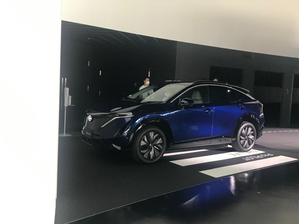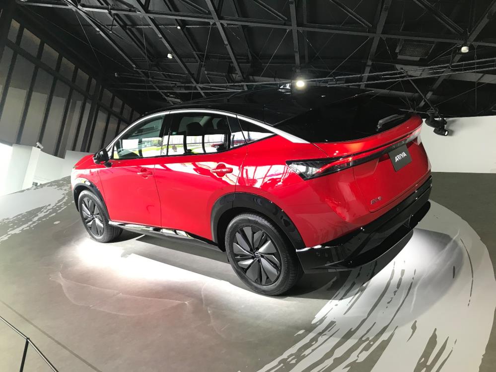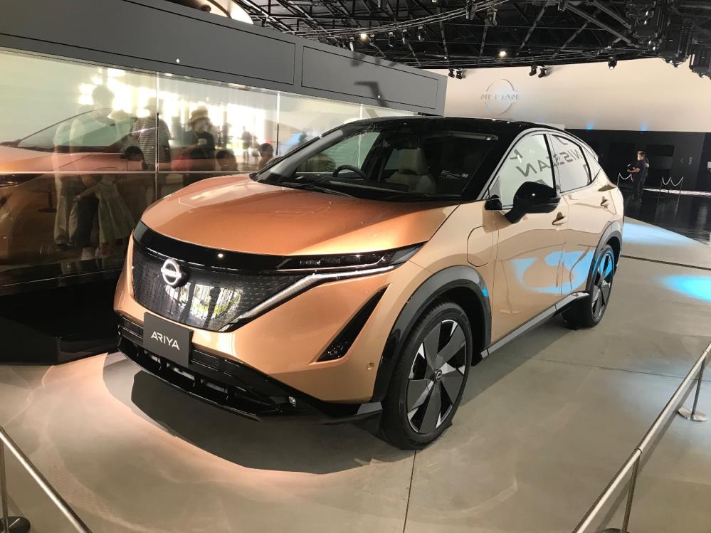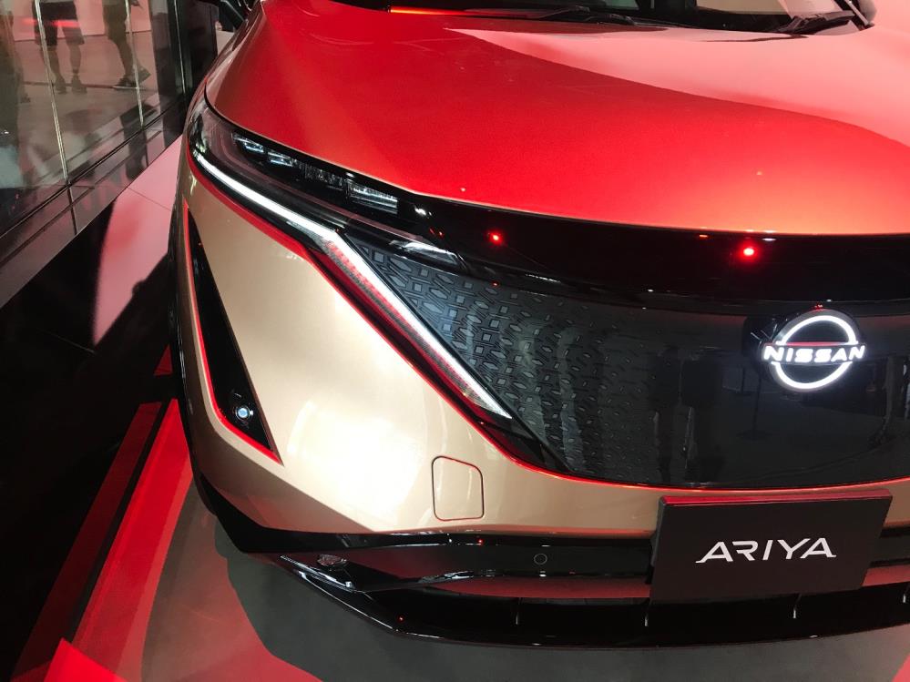 お目当ては、先日発表された新型EVのアリアの展示。