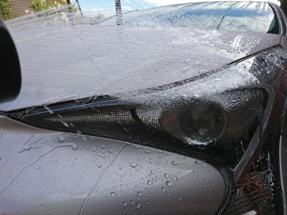 この前の修理の引き取りの帰り道、高速道路で雨に降られたのでガッツリ洗ってやりました。