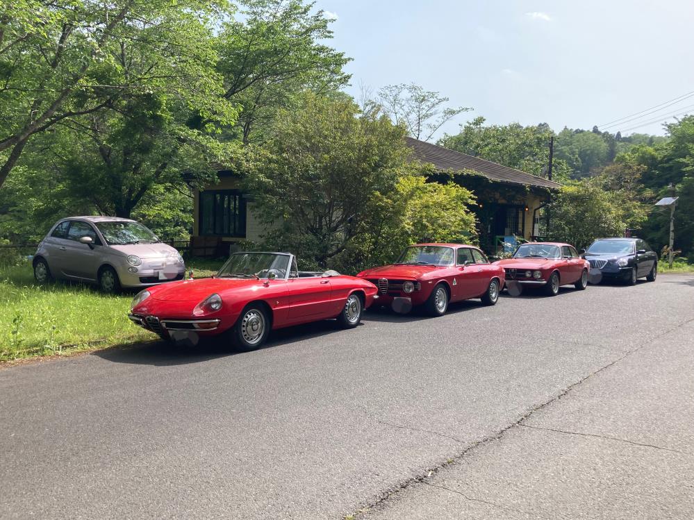こちらで1750gtvも加えた赤のアルファ3台と合流。
