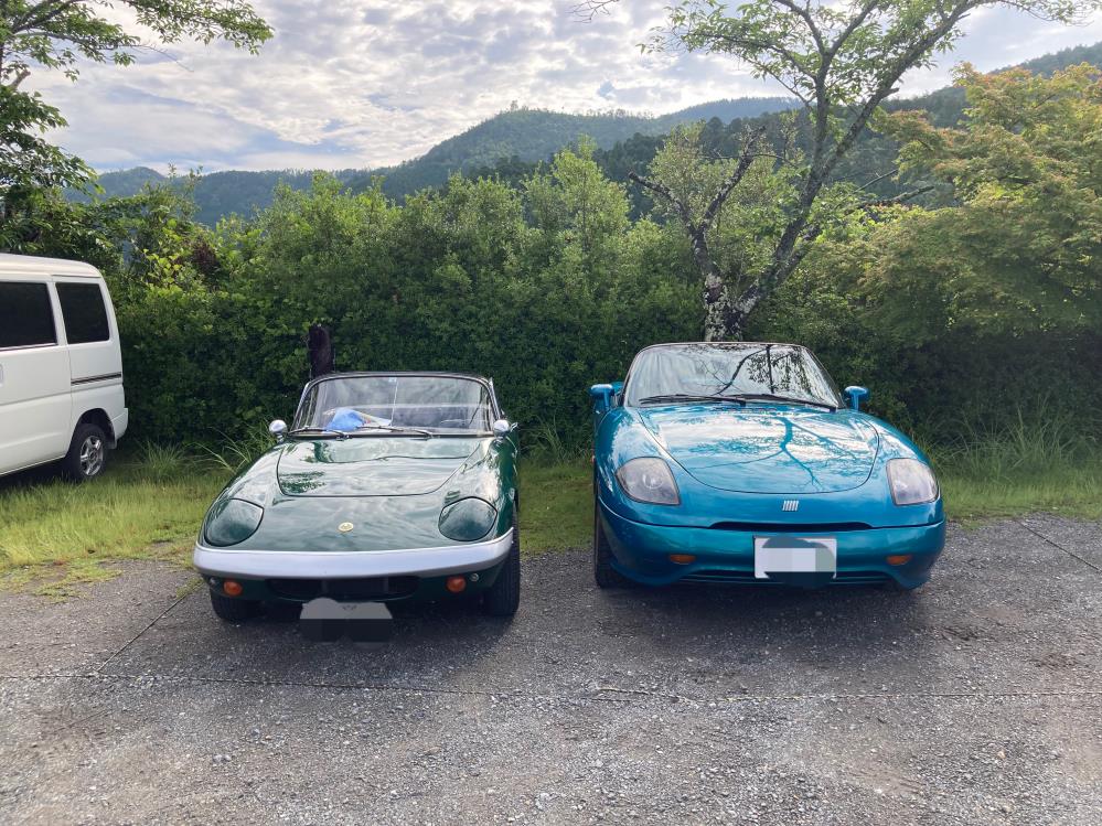 見学車両用駐車場に停めましたが、初代エランと並ぶとバルケッタが大きく感じます。