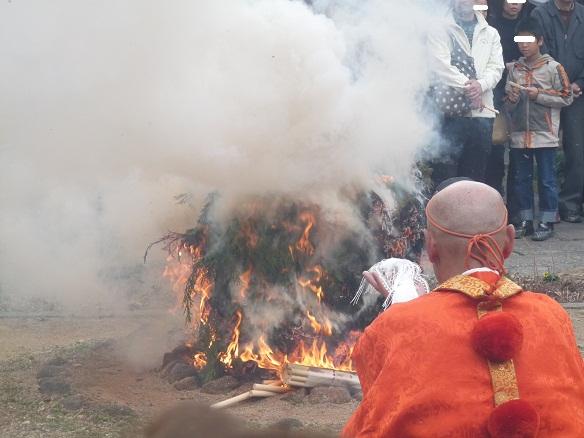 お祓いの後はお寺の真ん中にあるスペースで炎を焚いて、こちらでも家内安全・心願成就等々を祈ります。